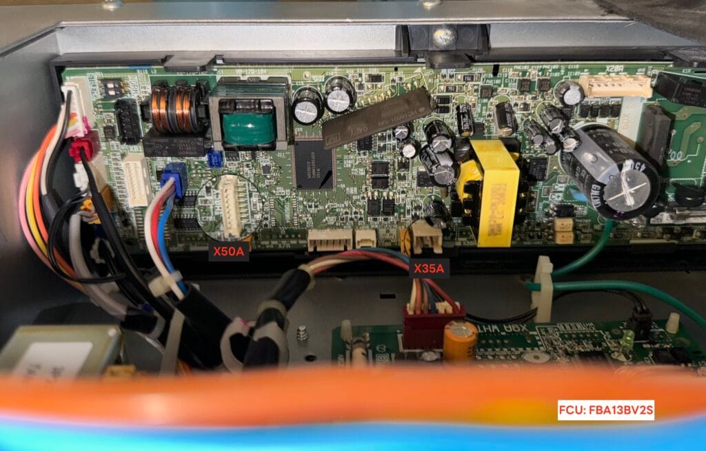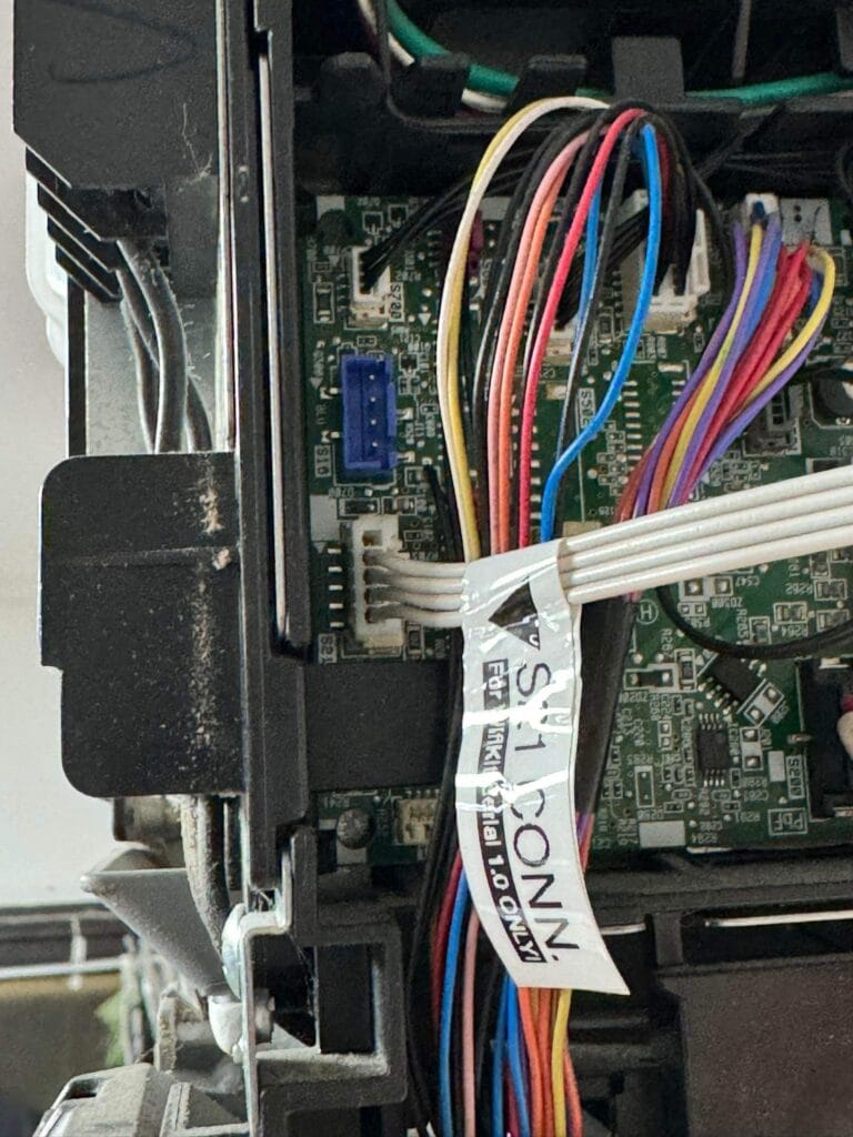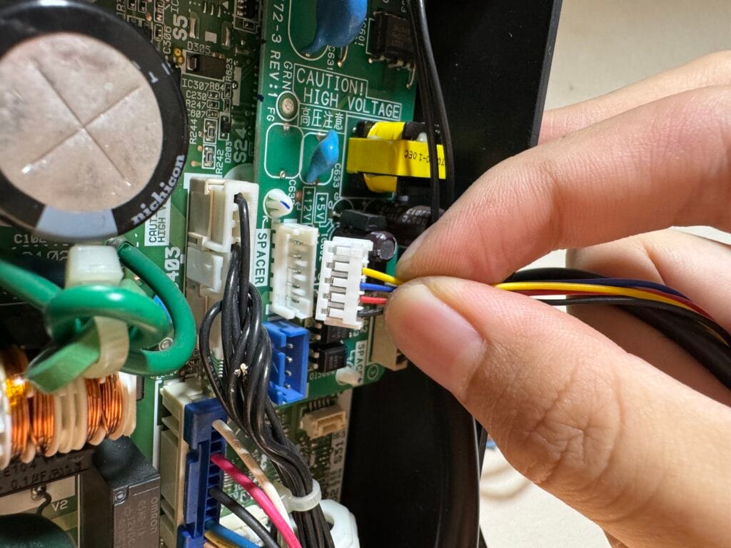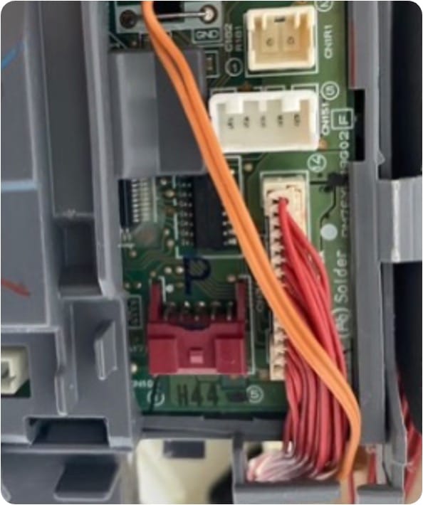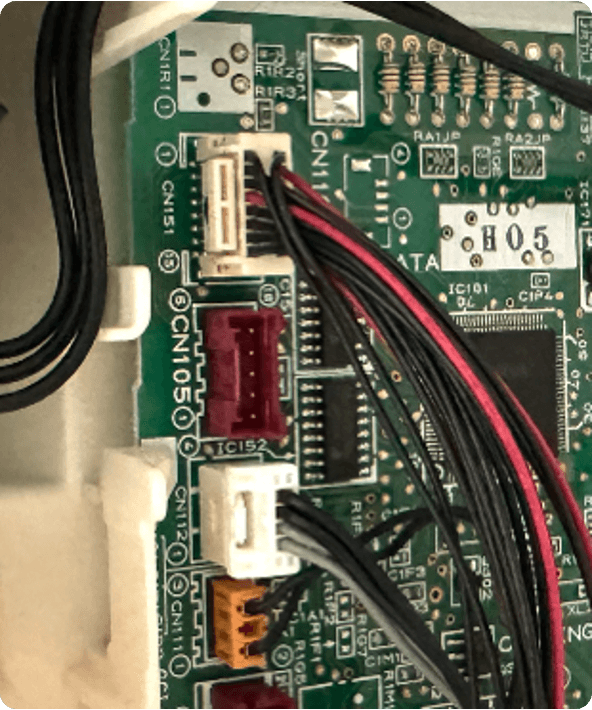 - Find the CN105 port (red slot) as shown in the picture. The position of CN105 may be in the control box (metal box) or on a small board at the front (depending on the model)