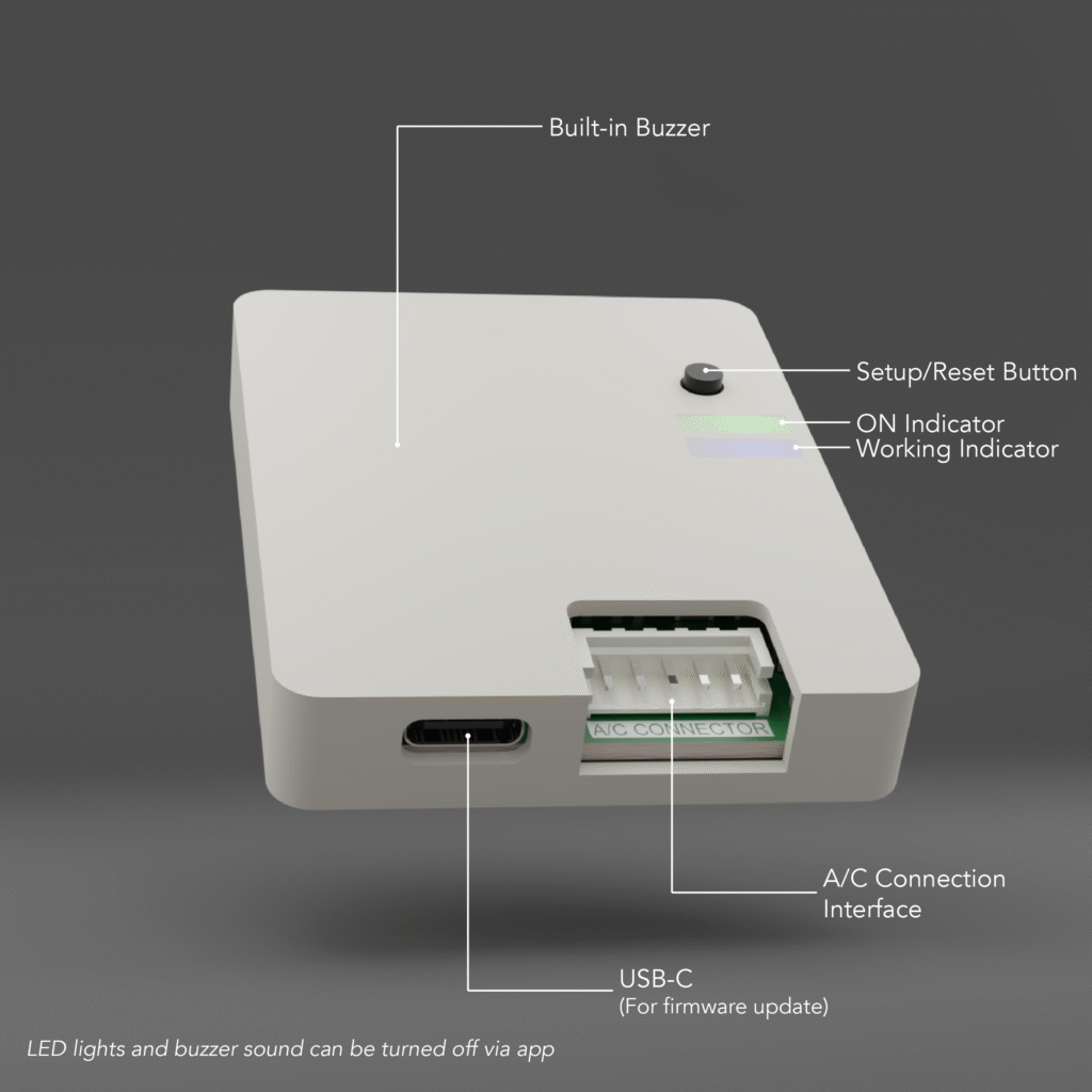 Wi-Fi Module lets you control your air conditioner via the Tuya Smart or Smart Life App. It supports bi-directional control for both remote operation using the app and physical control via IR remote. Status of the A/C unit is always synchronized, thanks to the direct connection to the A/C controller.